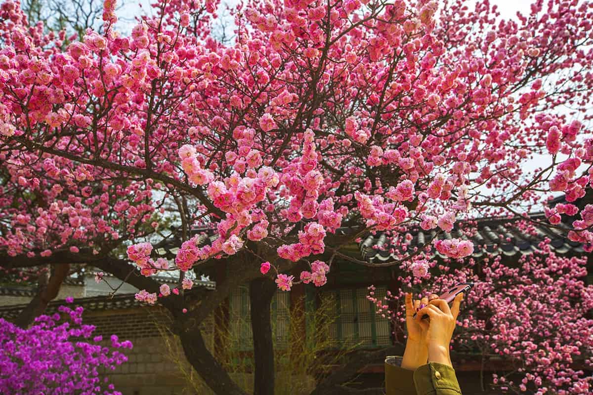 - 전통 한옥과 매화가 어우러진 감성적인 풍경